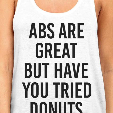 Abs Are Great Womens White Sleeveless Tank Top Gym Workout Shirt