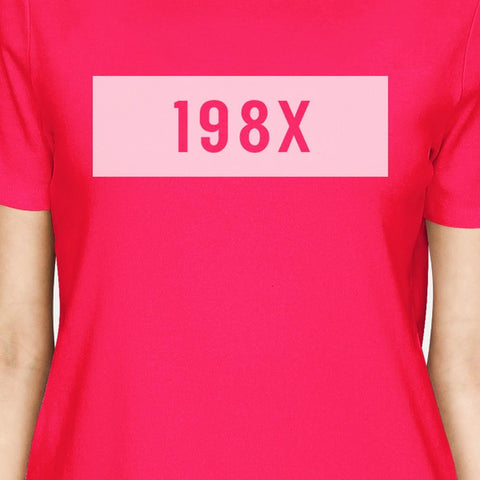 198X Womens Hot Pink Cotton TShirt Funny Design Letter Printed