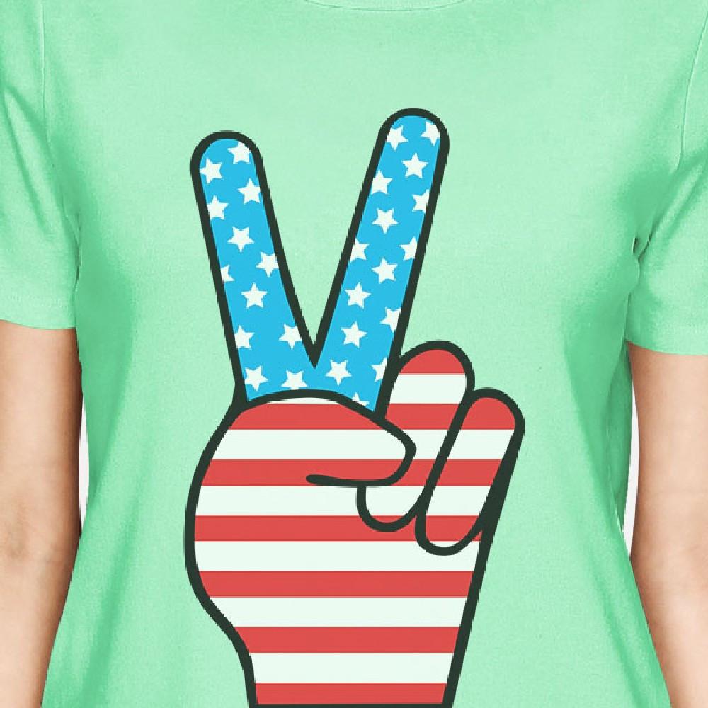 American Flag Unique Peace Sign Independence Day T Shirt For Women