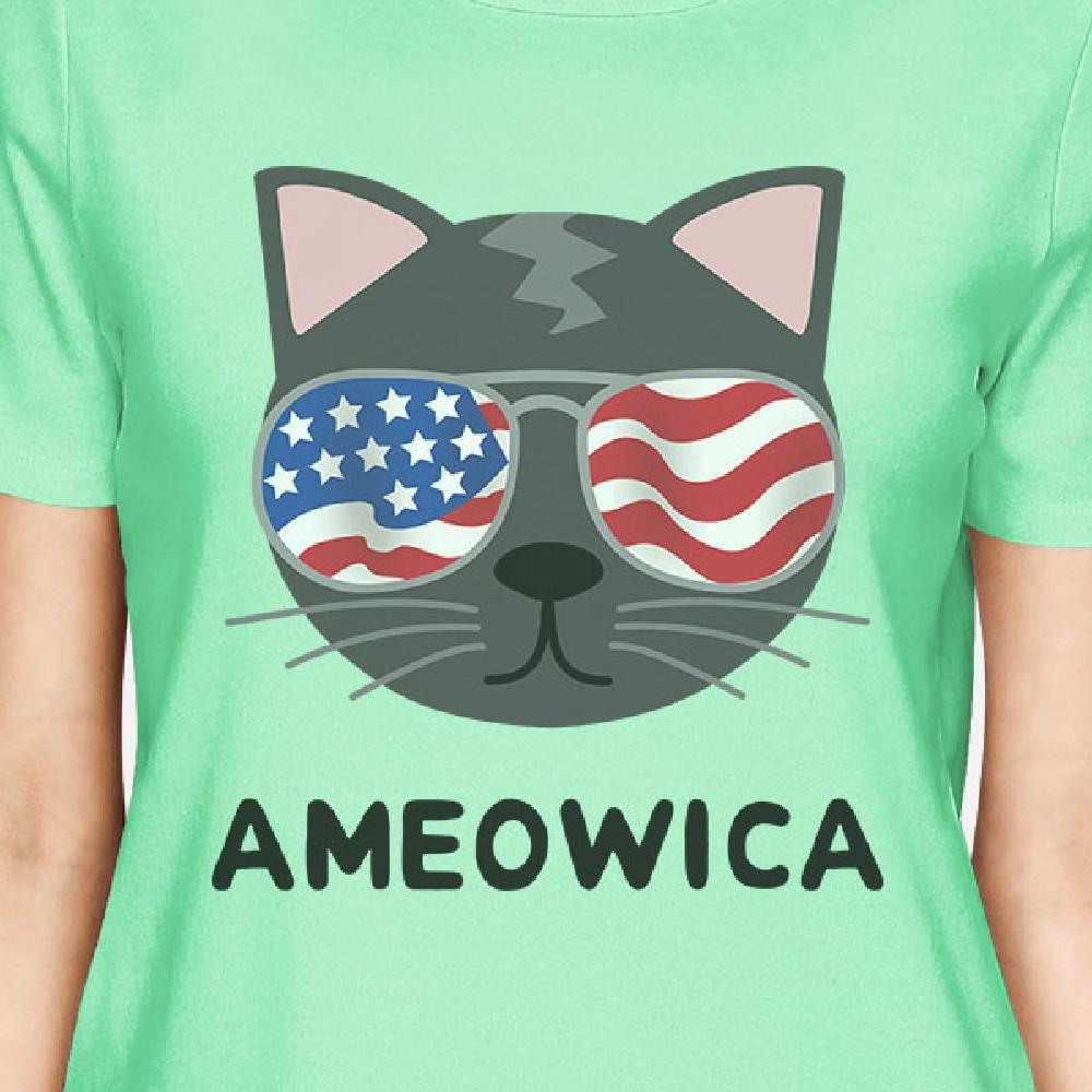 Ameowica Womens Mint Graphic Cotton T-Shirt Cute Cat Lover Tee