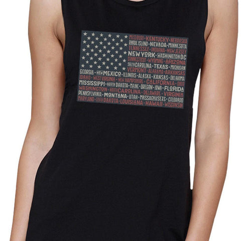 50 States Us Flag Womens Black Muscle Top Cap Sleeve For 4 Of July