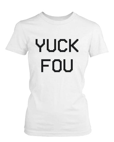 Whatever you do, don't let your tongue slip! To many people's surprise, this humorous printed shirt doesn't actually say what it looks like it says. Printed on the front of this funny graphic tee are the made up words “Yuck” and “Fou”, which when combined, provide a comical play on that nasty phrase you might tell someone that you don't particularly care for.